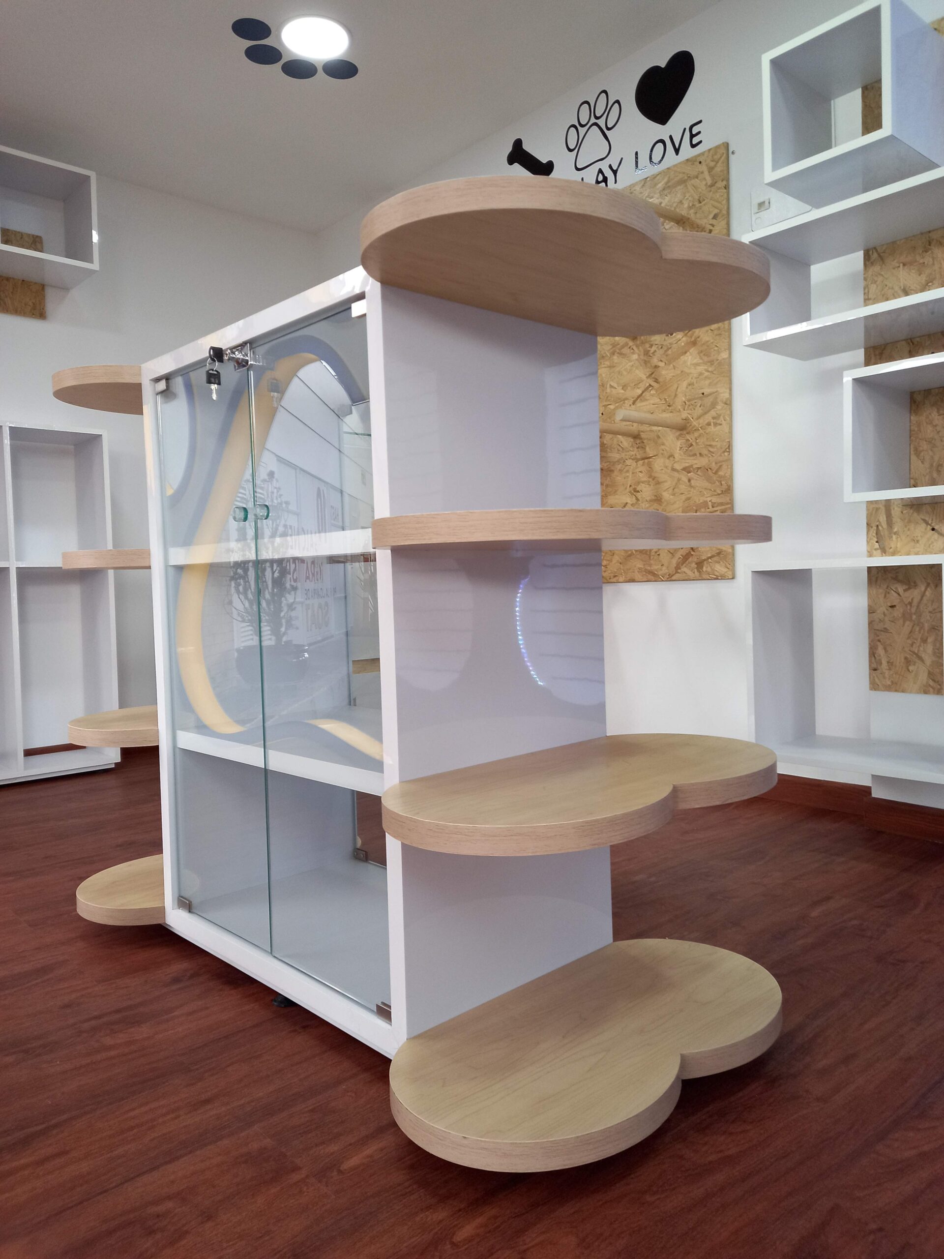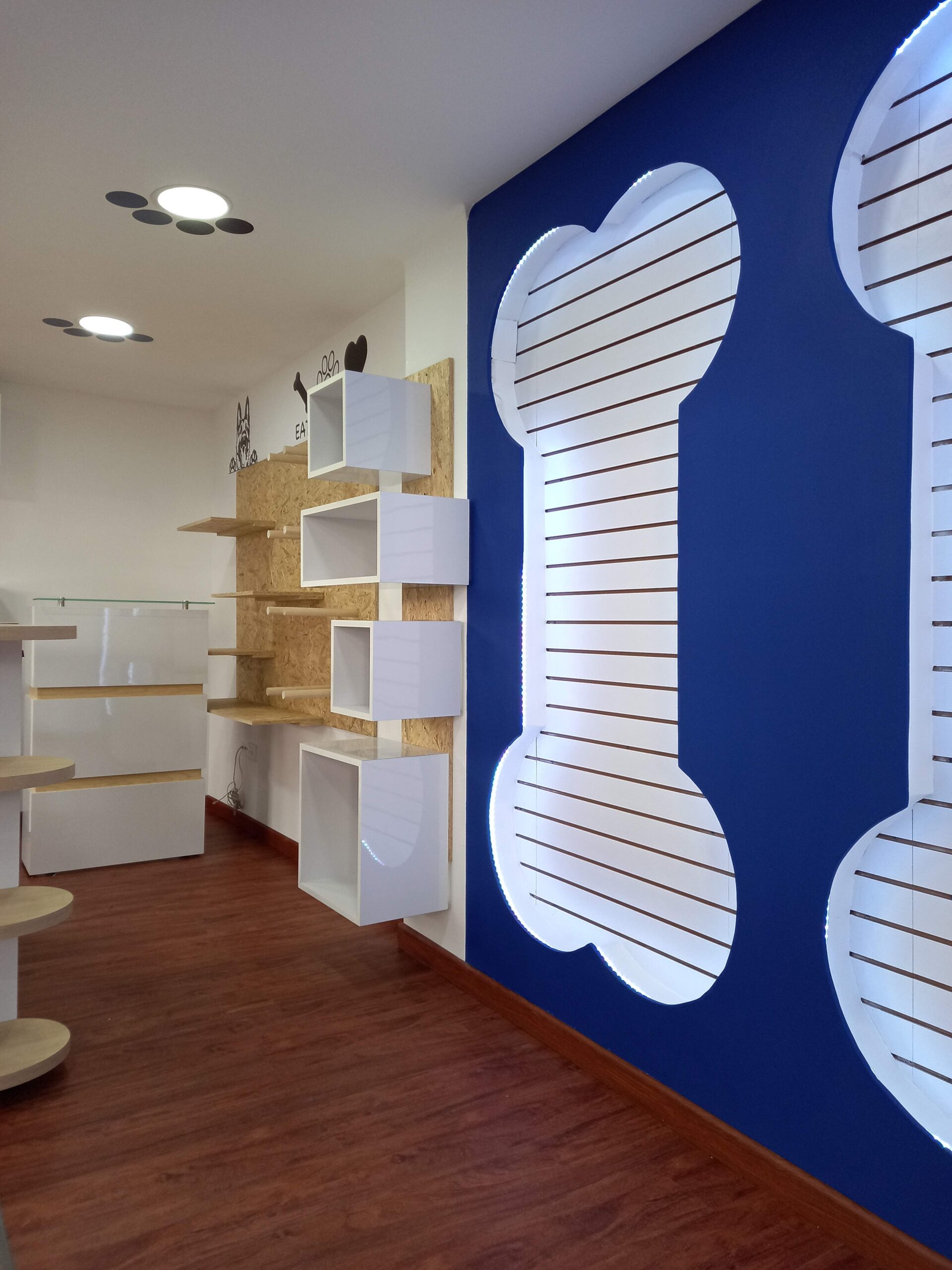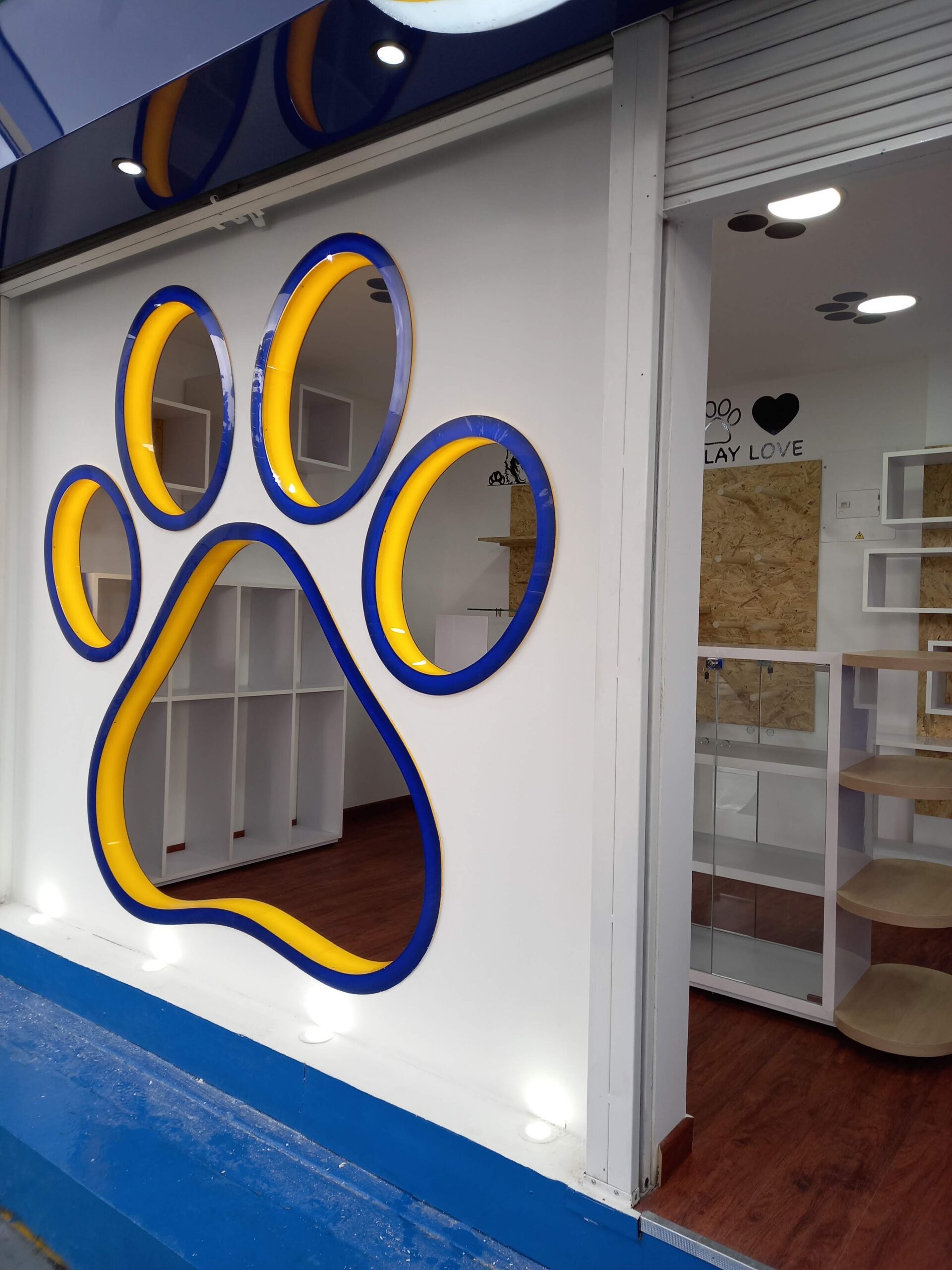 La Tribu Pets es un local comercial pensado para ofrecer una experiencia cercana, amigable y visualmente atractiva tanto para los dueños como para sus mascotas. Su diseño está orientado a generar empatía y confianza, reforzando el vínculo emocional con los animales mediante elementos gráficos y arquitectónicos que remiten al mundo pet.
